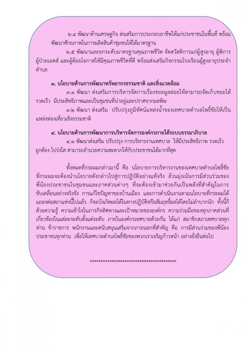 คำแถลงนโยบายของนายกเทศมนตรีตำบลโพธิ์ชัย