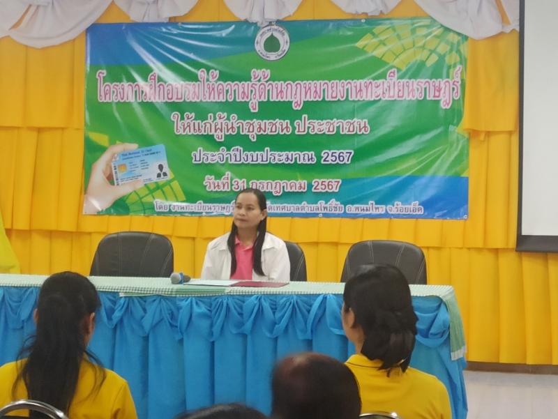 โครงการฝึกอบรมให้ความรู้ด้านกฏหมายงานทะเบียนราษฎร์ให้แก่ผู้นำชุมชน ประชาชน ประจำปีงบประมาณ พ.ศ.2567